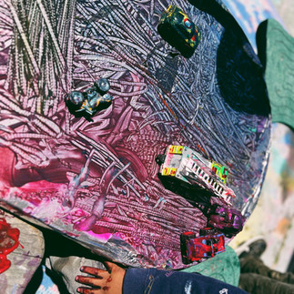 2. Ramp Race Painting:With recycled packaging we made DIY ramps at different heights, provided metallic paint, some cars, and invited the children to experiment and explore by dipping the cars into the paint and letting the cars race down the ramps.