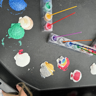 2. Invitation to Paint Seashells: We provided Colorations Metallic Paint, Brushes, & Seashells as the canvas to paint!