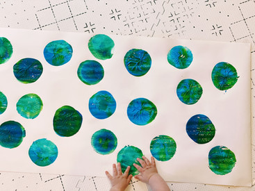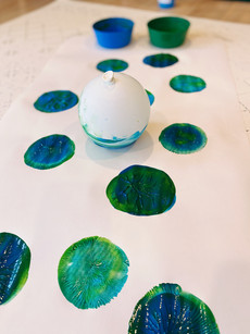 Balloon Stamping Earth🌎🌏🌍: Blow up a balloon or use a ball as the painting tool. Place a plate or bowl of blue and green paint. Provide your child with a paper, let them dip the balloon in the paint and print away!