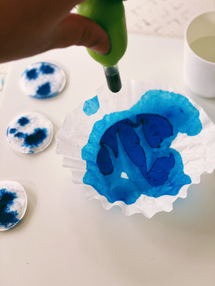 Coffee Filter Earth🌎🌏🌍: Place a coffee filter on a tray, provide blue and green Colorations liquid watercolors, food coloring, or watercolors. Provide your child with a paintbrush, dropper, or baster and let your child paint the earth. You can show a video or image of the earth as a point of reference!