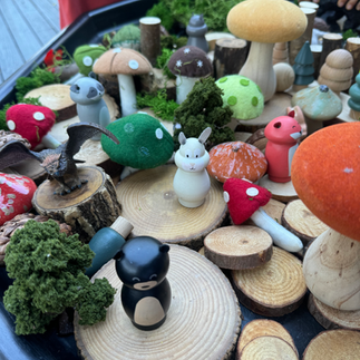 When children experience environments, see movies, read books, spark an interest in a subject matter, or engage in imaginary play, being able to provide an environment with their current curiosities or something they may not yet seen can honor rich meaningful play. Play comes in all different forms, and our core memories are associated with play that was meaningful and wondrous to us. Whether a child is already interested in a subject like dinosaurs, space, or in this case we are providing exposure to what a fall forest filled with animals would look like, the magic of small world play can truly bring anything to their level.