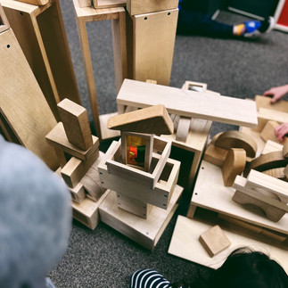 During her time in New York City she painted buildings & skyscrapers. We set out an invitation to create her paintings that were of buildings/skyscrapers in the block center. As a point of inspiration we printed out images of her paintings & during story time we have been reading these books to deepen their understanding of who painted these images.
