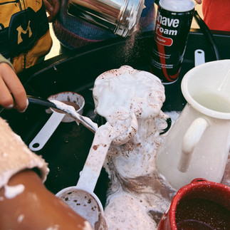 After reading the story we set up our @discountschoolsupply #TuffTray with hot chocolate powder, water, @dollartree shaving cream, cups, utensils, & invited them to create Champurrado. Champurrado is a chocolate-based atole, a warm & thick Mexican beverage. It is prepared with either a masa, masa harina, or corn flour; piloncillo; water or milk; & occasionally containing cinnamon, anise seed, or vanilla. Ground nuts, orange zest, & egg can also be added to thicken & enrich the drink.