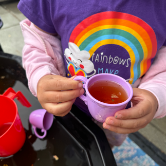 3.Invitation to Create Tea Party// We invited the children to explore different types of tea through smell, touch, & sight! To set the invitation we used different pitchers, tea cups, etc. as well as different flavors of tea that we steeped beforehand & invited the children to have their own tea time.