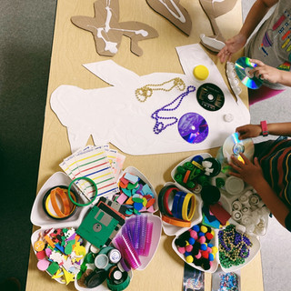 Collaborative collages are such a great way for children to learn how to work together. They are able to communicate and show each other what they are creating. The mix media materials also provide for tactile exploration and enhancing their fine motor development as they grasp the different textures to strategically place them. Open-ended process driven art experiences aide children to express their creativity and expand their mind. The children truly collaborate with one another to make a masterpiece come to life together.