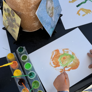 We have been exploring the Dutch post-impressionist artist Vincent Van Gogh. Through reading stories about him, looking at his art, exploring his bold use of colors, and exposing them to the beauty in different styles and techniques in art from around the world helps children develop awareness of the arts.