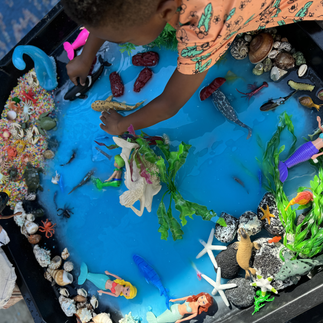 Since mermaids are magical ocean creatures loved by littles, we invited them to explore three different mermaid lagoons.