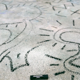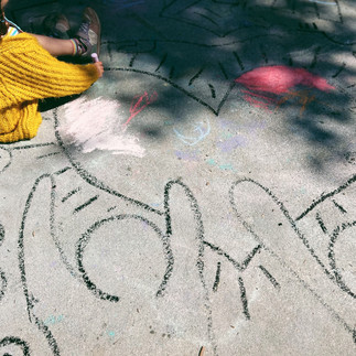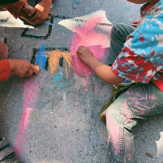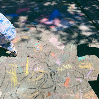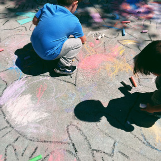 After reading Drawing on the Walls, Art is Life, and Pop Art Baby, with a black tempera stick we created outlines of his art on our sidewalk. We invited the children to color Keith Haring Street art with chalk to pay homage to his first subway painting.
