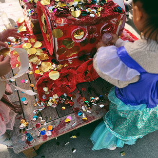 1. Recycled Dragon Process Art: We created a dragon with recycled items, provided paint, golden stickers, colorful confetti, and glue. The children were invited to paint and create!