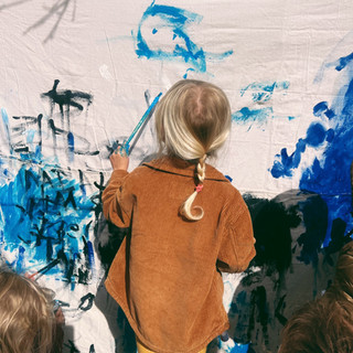 They paved the way for artists to come by breaking down barriers and making a huge impact on what they contributed through music. Ma Rainey, Nina Simone, Billie Holiday, Ella Fitzgerald, Aretha Franklin are just a few female Black Blues/Jazz artists who made music history. To honor these pioneers for #BlackHistoryMonthy we have been reading books about the artist, listening to their music, and we invited the children to paint the 'blues' with musical instrument paint brushes to connect to the arts. Blues music gets its name from its original association with melancholy subjects and sounds and the 'blue notes" used, so we decided to provide blue, white, and black tempera paint as the colors to create with.