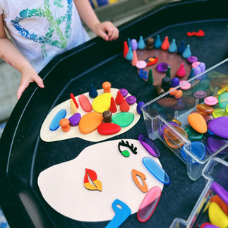 When a child uses loose parts to create, it gives opportunities to work on spatial awareness, exposes them to different forms of art, paying attention to detail, and enhancing their language skills as they communicate what they see or what they are doing. As they manipulate the loose parts to fit inside, outside, or around the designs they are enhancing their fine motor skills, hand-eye coordination, and shape recognition. Loose parts are dynamic by nature, therefore the child is given the opportunity to be just as creative as Pablo Picasso.