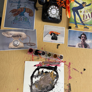 2. Lobster Telephone Still Life Painting: Exploring Surrealism: Inspired by Dalí’s famous 1938 work “Lobster Telephone,” the children explored the world of Surrealism through still life painting. We set up a 3D telephone and lobster model alongside images of the original artwork, providing paint, brushes, and paper for the children to reimagine Dalí’s curious pairing. This experience encouraged them to think abstractly and explore how unrelated objects can come together to create something entirely new — just like Dalí did.