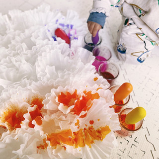 When reading this book at home or in a classroom, you can extend the literacy experience with a process-art invitation that deepens the connection. This invitation is to create sunset flowers. You will need yellow, orange, red, pink and purple liquid water colors. Droppers or pipettes as the tool to paint. Coffee filters that you will glue on cardboard or poster paper together. Simply ask the child to drop liquid water colors onto the coffee filters to create beautiful sunset flowers just like the story.