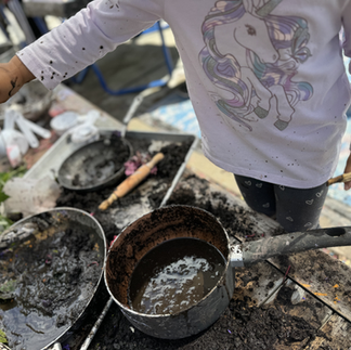 Mixing soil, water, & other natural materials provides children endless possibilities for learning through play as well as enhancing so many areas of developmental (cognitive & physical).
