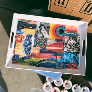 After reading the books A Blaze with Color: A Story of Painter Alma Thomas and Alma's Art we also looked at printed out images of her creations. To honor her influential work for #blackhistorymonth we set out three invitations to recreate her art work in order to inspire children to become creative just like Alma.