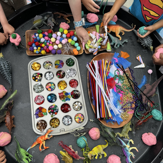 This week during our summer enrichment program we are exploring our favorite prehistoric animals Dinosaurs! Through reading books, singing songs, & setting out different invitations to explore all things in the land before time through open ended play.