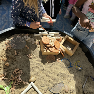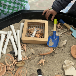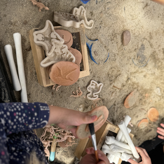 Invitation to Explore Mary Anning Excavation Site: Before inviting the children to become Paleontologists we read the story Dinosaur Lady, which explores the daring discoveries of Mary Anning, the first female Paleontologist.