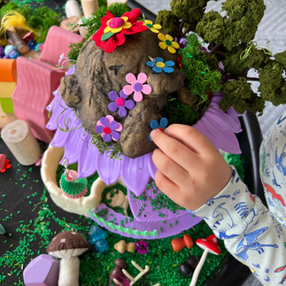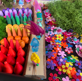 When children see movies, read books, experience environments, spark an interest in a subject matter, or engage in imaginary play, being able to provide an environment with their current curiosities can honor rich play. Play comes in all different forms, and our core memories are associated with play that was meaningful to us. Whether a child is interested in dinosaurs, space, or in this case Trolls, the magic of small world play can truly bring their wonders to life.