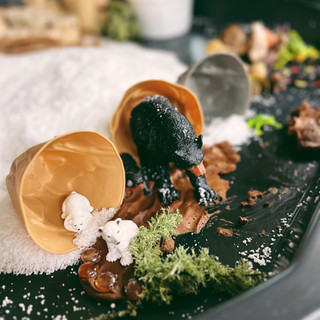 A great way to extend the literacy experience is providing a STEM building experience where a child can great a winter sleep environment with loose parts, foraged nature, play dough, hibernating creature figurines, bottle brush trees, tree blocks, on a bed of insta snow in a tuff tray. Simply invite the child to create and build a bed for all of the creatures in the book to get some winter sleep!
